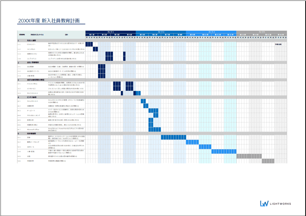 新人育成計画・研修スケジュールに使えるテンプレート(ダウンロード可)